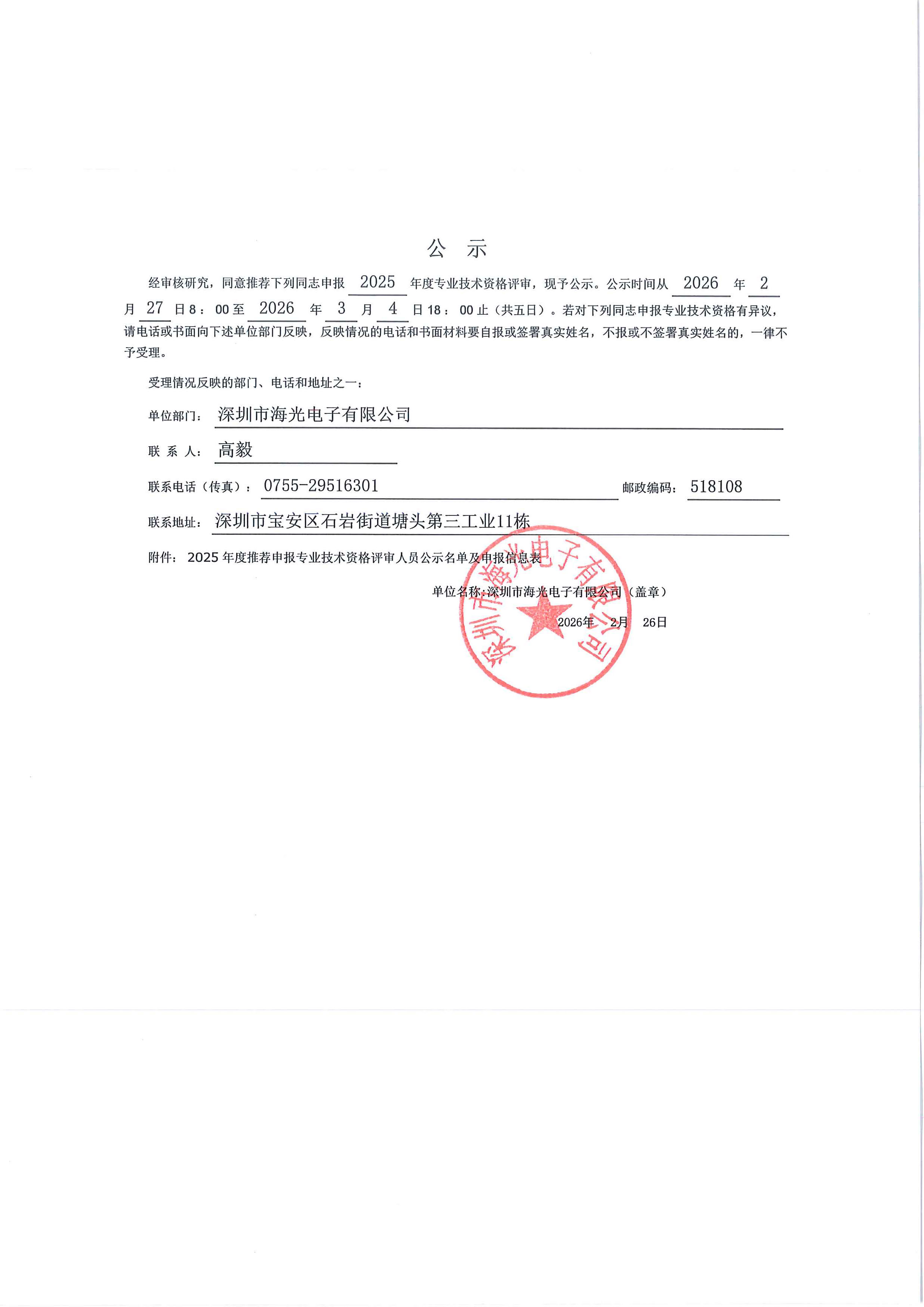 2.公示對象申報材料(含業(yè)績成果、學(xué)歷資歷、繼續(xù)教育證明等)可在本公司二樓綜合會議室查閱。